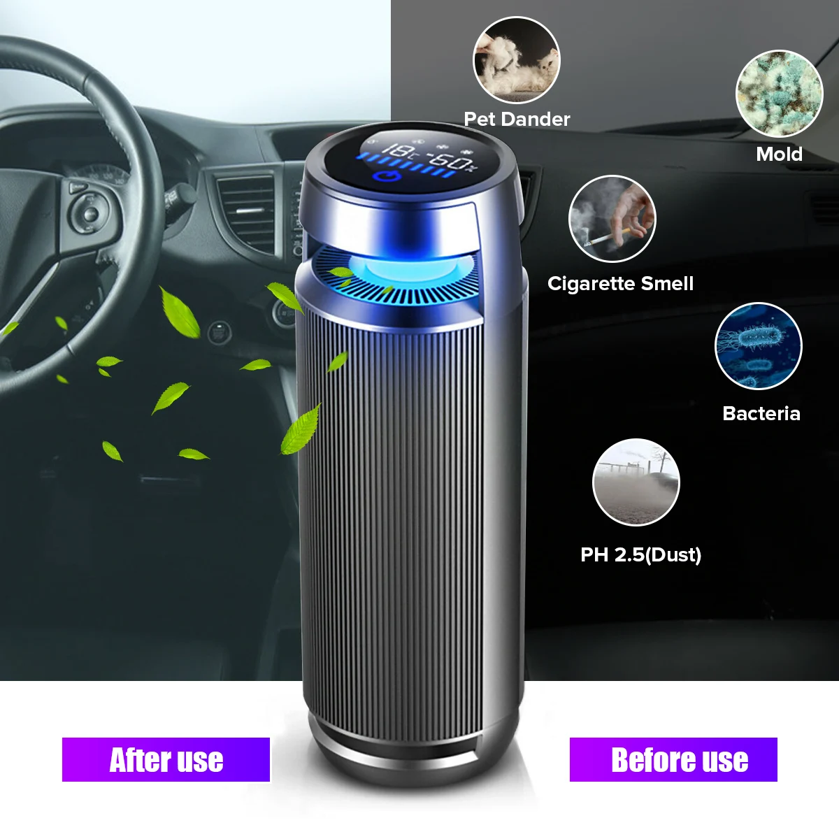 Other image for AUGIENB USB Car Air Purifier Negative Ion Air Cleaner for PM2.5 Formaldehyde Smoke Odor Allergies L