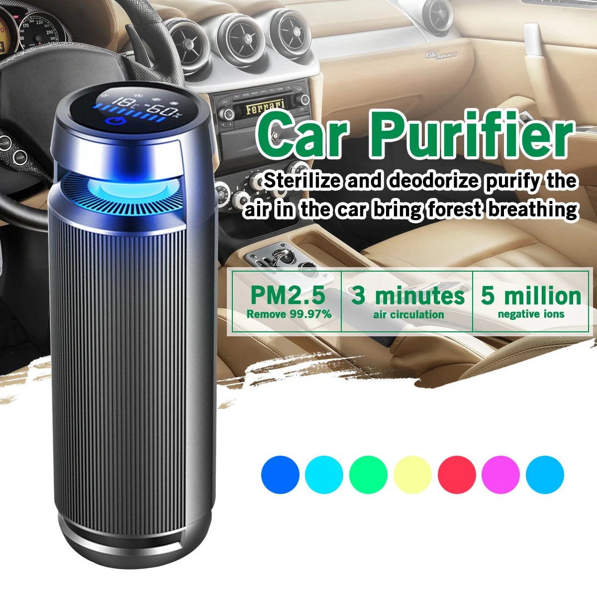 Luxury AUGIENB USB Car Air Purifier Negative Ion Air Cleaner for PM2.5 Formaldehyde Smoke Odor Allergies L