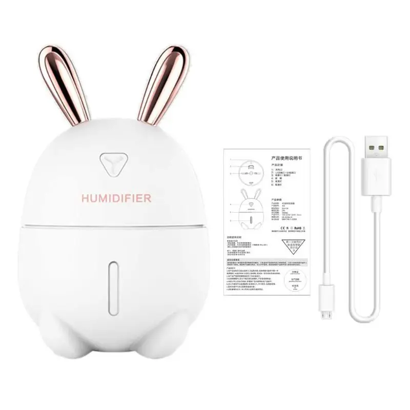 Super Value Deals 300ML USB Air Humidifier Purifier Mist Maker Cute Rabbit Ultra Silent Night Light Aroma Essential O